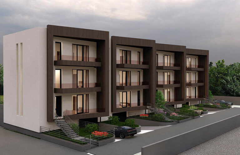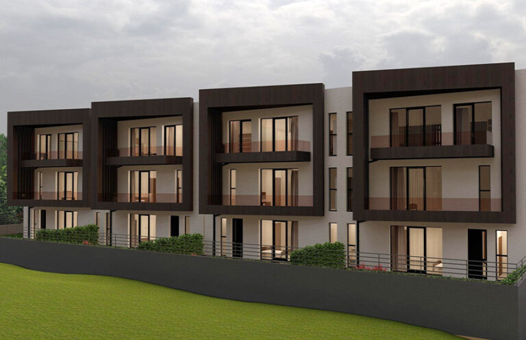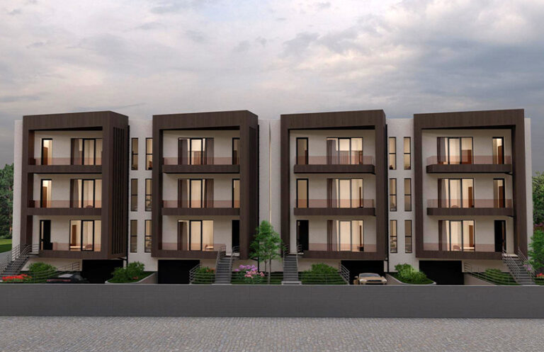 ექსტერიერის დიზაინში გამოყენებული მასალები — Kale-ს კერამიკული ფილა, მინის მოაჯირები და ვიტრაჟის შავი ალუმინის პროფილები — ხაზს უსვამს შენობის მინიმალისტურ და დახვეწილ ხასიათს. ტერიტორია სრულად არის იზოლირებული 1.80 მ სიმაღლის ღობით, რაც მაცხოვრებლებისთვის დამატებით სიმშვიდესა და უსაფრთხო გარემოს ქმნის.
